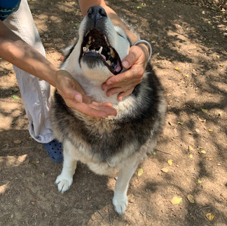 ✨Aks gets along swimmingly with other dogs, and he’s playful despite his age.