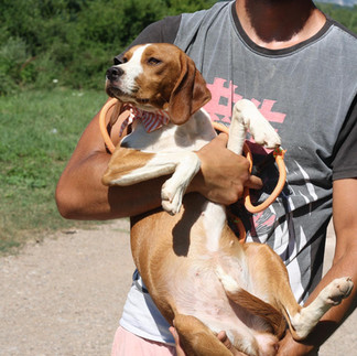 Lovely Posavac hound mum was spotted with her 11 babies on a field in a village. Locals said she was roaming around looking for food for weeks so possibly she gave birth somewhere and once the puppies started walking she took them to a field.