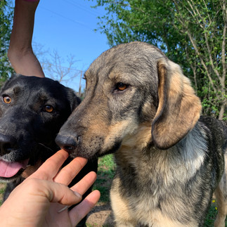Leo is the owner of an extremely stable character, indulgent towards his dominant sister, extremely friendly to dogs, gentle when playing with them and does everything they ask of him in the game. He grew up with puppies, so he does not understand dog aggression when it is directed at him. He doesn't defend himself, often finds himself confused. He loves to run, swim, and likes to be with as many dogs as possible. He likes to eat, but he will leave his bowl to his sister, if she wants it. Cheerful, always ready to cuddle. They came to the shelter alone by taxi. They sat in the back seat without any problems.