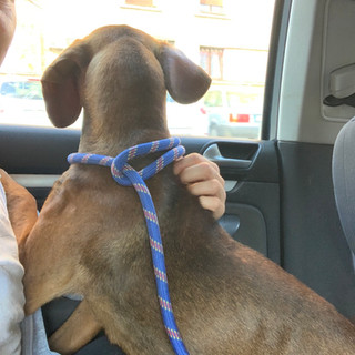 We caught her, took her to the vet for a healt check up. The vet estimated her as a young 1,5 y old female dog of 17kg who perhaps had rachitis as a puppy ( due to her legs shape). She was dewormed and had her flie/tick treatment and was finally brought her to the accommodation where she will be spending time both indoors and outside in the yard. Sheāll be fed regularly to add some weight and hopefully will be vaccinated and spayed so she could join us later to our shelter.