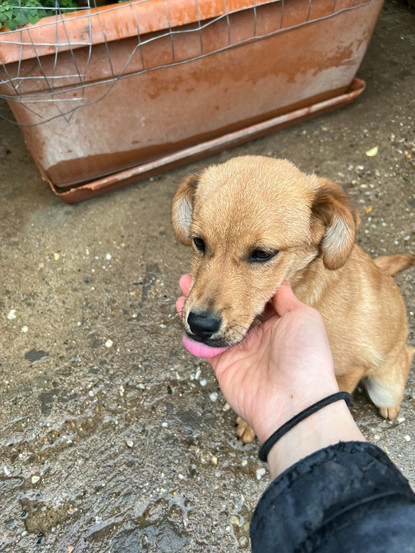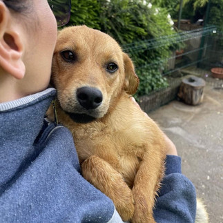 Ever since puppy, he was the gentle one- Timmy the baby. He never initiates any problems, he's always up for games with his buddies, isn't destructive with inventory, and is always in a mood to exchange kisses with anyone who comes to visit. Timmy is a calmer type of a puppy who'd always prefer to spend time with his human rather than making mischief with numerous dogs he has as friends in his rescuer's home.